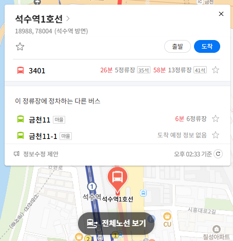 시흥 3401번 버스 실시간 위치 조회하기