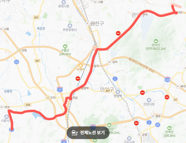 ● 고속도로(서해안고속도로 등) 이용으로 빠른 이동: 연성대학교 이후 제2경인고속도로, 서해안고속도로 등을 이용하여 서울로 진입하므로 빠른 이동이 가능합니다. 특히 교통 정체 시에도 고속도로를 이용해 비교적 빠르게 이동할 수 있다는 장점이 있습니다.
