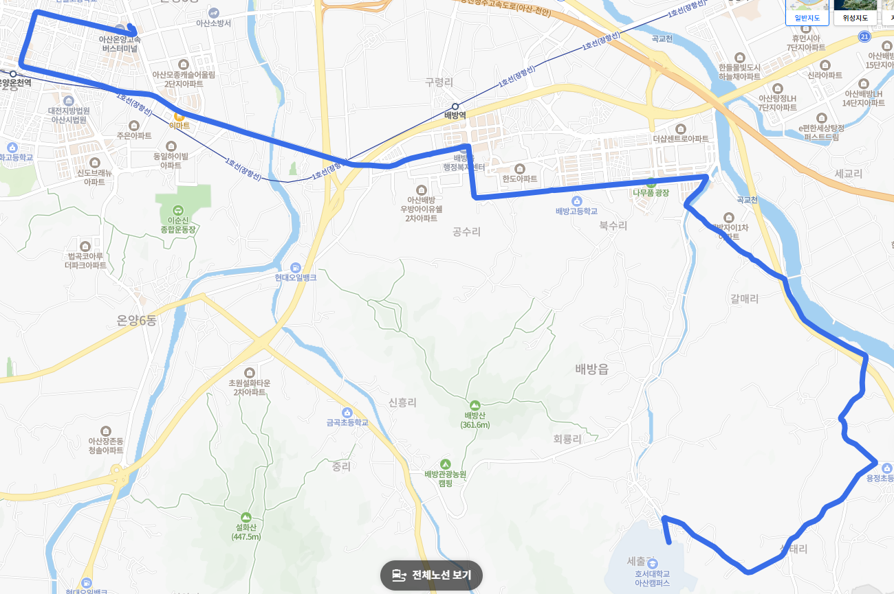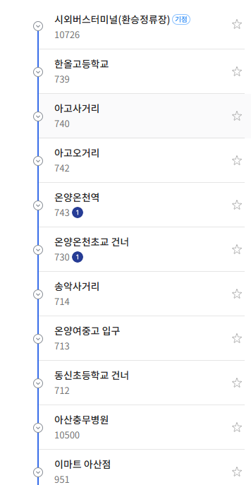 아산시 시내버스 노선 중 운행 횟수가 많은 노선 중 하나입니다.