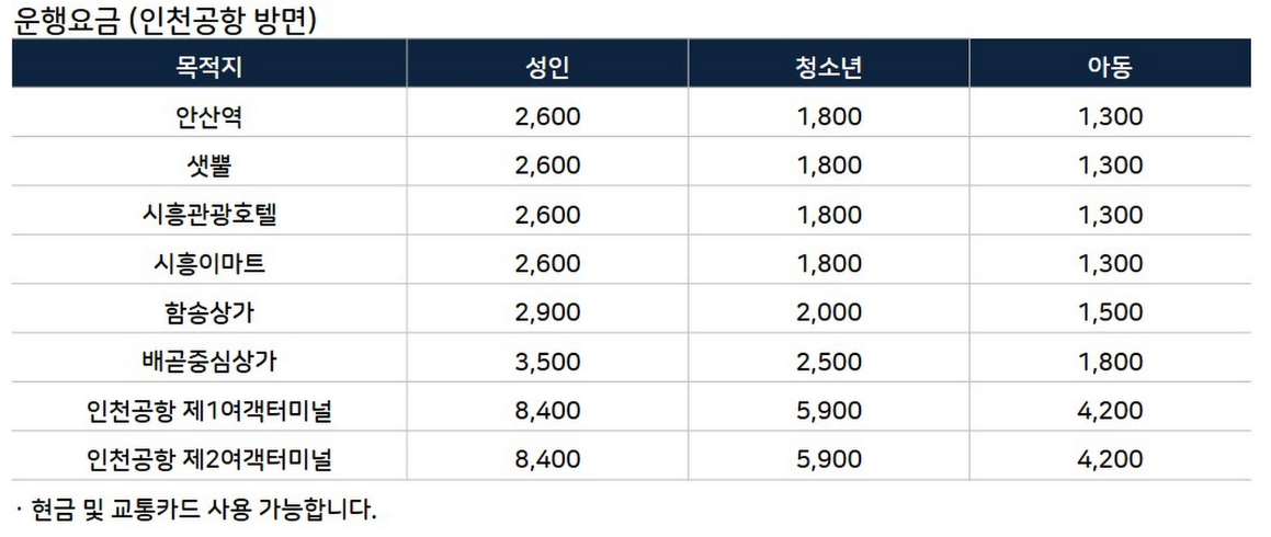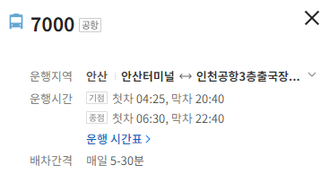안산 공항 7000번 버스 운행요금