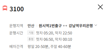 안산 3100번 버스 배차간격