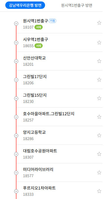 안산 3100번 버스 운행노선 원시역1번출구→시우역1번출구→신안산대학교→그린빌17단지→그린빌15단지→호수마을아파트.그린빌12단지→양지고등학교→대림호수공원아파트→미디어라이브러리→푸르지오1차아파트→고잔1차푸르지오→한양대정문→한양대입구→석호초교사거리→서원호텔입구→푸른마을5단지→상록수역앞→상록수체육관→상록중학교.본오동→수인산업도로2(미정차)→수인산업도로1(미정차)→두산위브더센트럴→서해아파트→대림아파트→대야미삼거리→용호고등학교→당동주공아파트→군포시평생학습원→한세대학교→당정초등학교.군포문화원→군포제일공단입구→케피코경기외국어고등학교→롯데케미칼→고천.의왕시청→원효충무아파트→왕곡초등학교→의왕터널진입(미정차)→학의JC(미정차)→과천터널진입(미정차)→과천IC(미정차)→경마IC(미정차)→우면산터널TG(미정차)→예술의전당앞(미정차)→서초아트자이아파트→서초역1번출구→교대역→서초아르누보호텔(미정차)→강남역우리은행