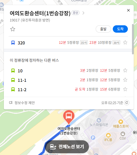마지막 정류장 여의도환승센터(1번승강장) 위치 알아보기