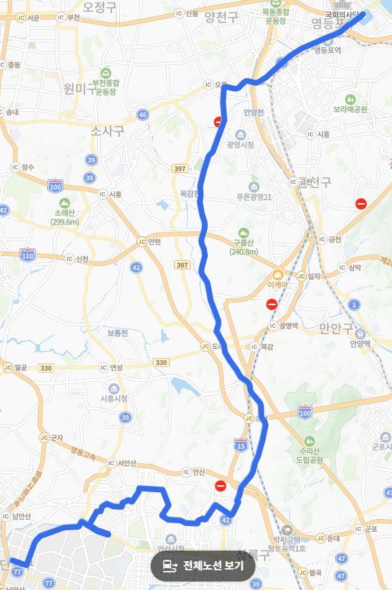반월공단을 기점으로 안산역, 선부동, 와동 등 안산의 주요 주거 및 상업지역을 거칩니다. 또한 광명시의 광명사거리역과 구로, 신도림, 영등포 등 서울의 주요 도심을 경유하여 다양한 생활권과 연결됩니다.