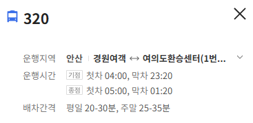 종점행 : 첫차 : 05:00 막차 : 01:20