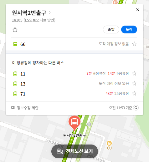 주요 버스 정류장 원시역2번출구 위치 알아보기
