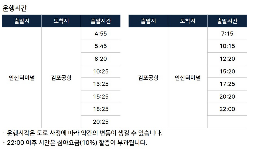 새벽 및 심야 운행: 이른 아침 비행기 탑승객이나 늦은 시간 도착하는 여행객들을 위해 새벽 및 심야 시간대에도 운행합니다.
