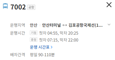 기점행 : 첫차 : 04:55 막차 : 20:25