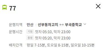종점행 : 첫차 : 05:20 막차 : 23:00