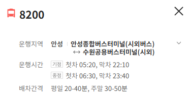 안산 8200번 버스 배차간격