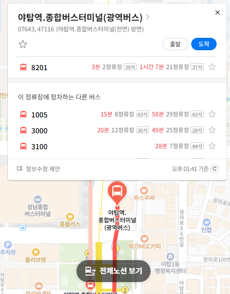 마지막 정류장 야탑역.종합버스터미널(광역버스) 위치 알아보기