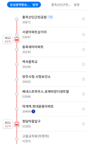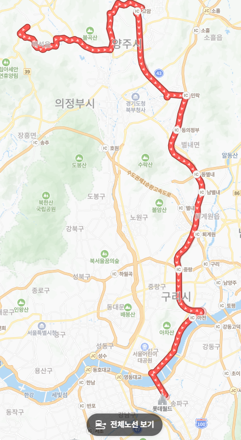 백석-덕계 지역 수요 흡수: 양주에서 서울로 나가는 직행 노선이 부족했던 백석읍과 덕계동 주민들의 오랜 숙원 사업을 해소해 주었습니다. 특히 덕계역에서는 잠실로 바로 가는 유일한 광역버스 노선으로, 대중교통 이용 선택의 폭이 넓어졌습니다.