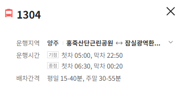 양주 1304번 버스 배차간격