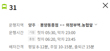 양주 31번 버스 노선 정보