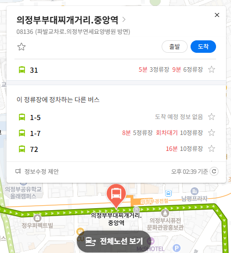주요 버스 정류장 의정부부대찌개거리.중앙역 위치 알아보기