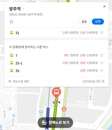 양주 31번 버스 실시간 위치 조회하기