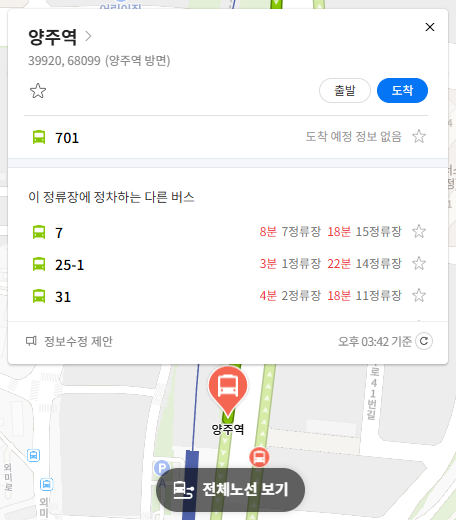 양주 701번 버스 실시간 위치 조회하기