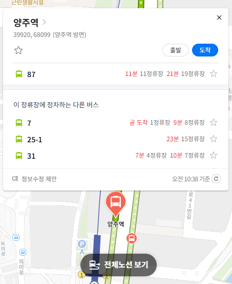 양주 87번 버스 실시간 위치 조회하기