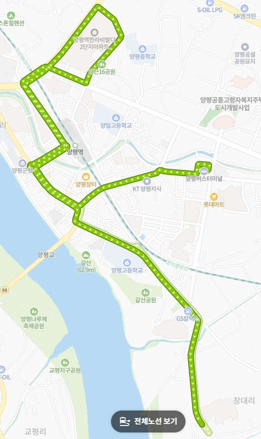 생활권 이동 지원: 개군면 등 외곽 지역 주민들이 병원, 관공서(양평군청), 시장, 학교 등을 이용하기 위해 **양평 시내(양평읍)**로 이동할 수 있는 가장 기본적인 대중교통 수단입니다.