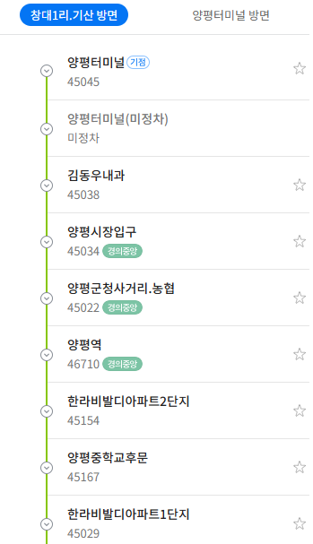 지역 내 환승 거점: 양평터미널에서 양평군 내의 다른 농어촌 버스 노선(강상, 용문, 청운, 단월 방면 등)으로 환승하기 위한 주요 거점 역할을 수행합니다.