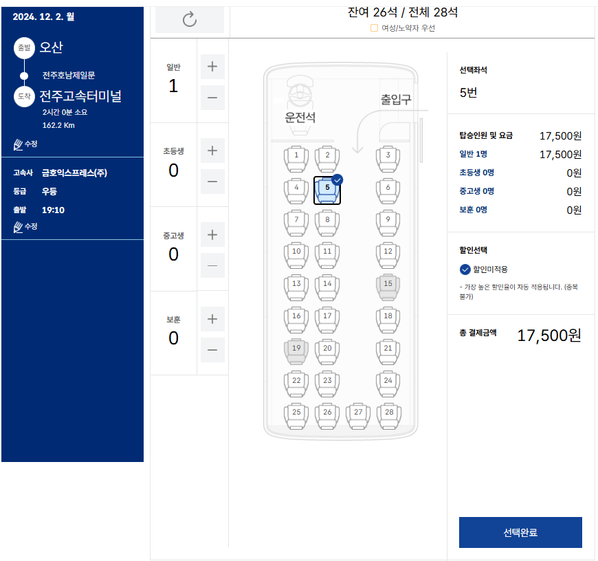2024년 12월 02일 기준 전주, 전주호남제일문은 전국고속버스통합 예매 홈페이지 또한 가능합니다.
