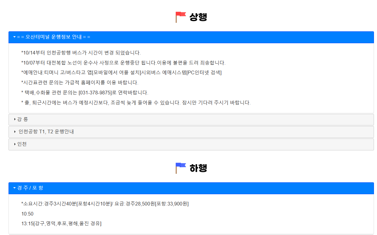 오산 시외버스터미널 시간표