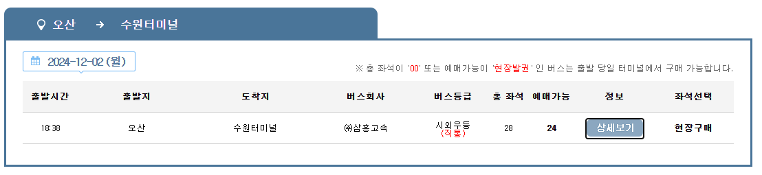 오산 고속버스 승차권 예매하기