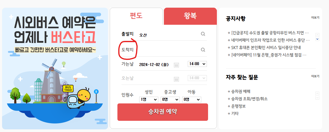 오산 시외버스 승차권 예매하기