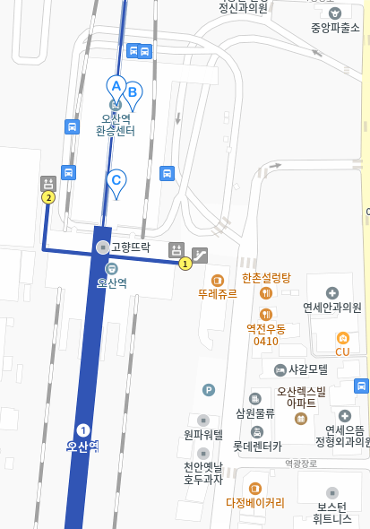 오산역과 환승이 용이한 위치에 있습니다.