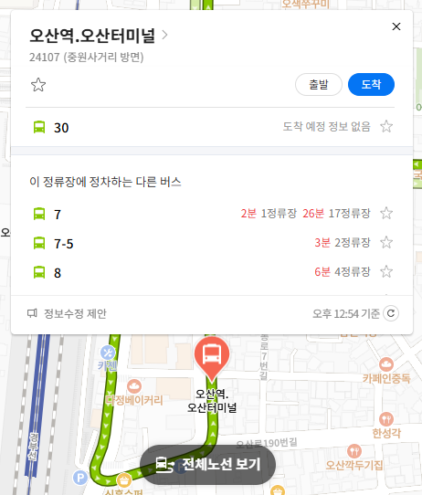 실시간 위치를 확인하시면 현재 버스의 위치를 알 수 있습니다.