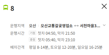 오산 8번 버스 노선 정보