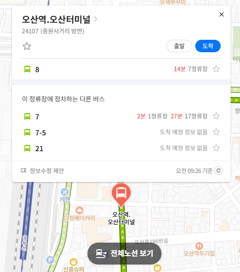 오산 8번 버스 실시간 위치 조회하기