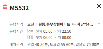기점행 : 첫차 : 05:00 막차 : 22:50