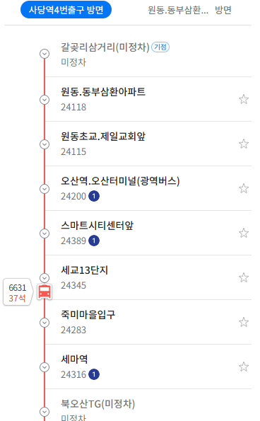 서울 접근성 향상: 오산 갈곶동에서 사당역까지 운행하여 오산 시민들의 서울 도심 (특히 강남권) 접근성을 크게 높여줍니다. 사당역은 서울 지하철 2호선과 4호선 환승역으로, 서울 내 다른 지역으로 이동하기에 편리합니다.