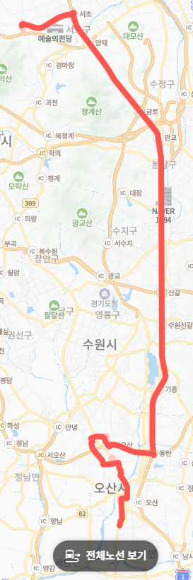 주요 거점 연결: 오산역, 오산대역, 세마역 등 오산 내 주요 거점들을 경유하여 오산 시민들의 이용 편의성을 높입니다. 또한 서울에서는 남부터미널, 예술의전당, 사당역 등 주요 지점에 정차합니다.