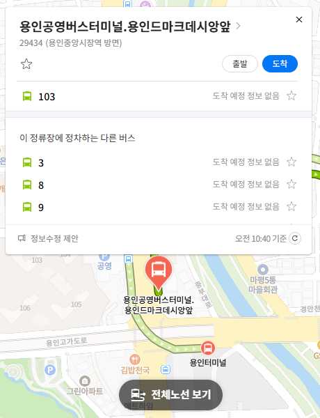 주요 버스정류장 용인공영버스터미널.용인드마크데시앙앞 위치 알아보기