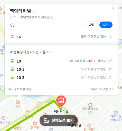 기점행 : 첫차 : 06:20 막차 : 21:00