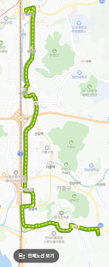 교육 및 문화 인프라 연결: * 경기도박물관·백남준아트센터: 용인의 대표 문화시설을 경유하여 가족 단위 이용객에게 유용합니다.