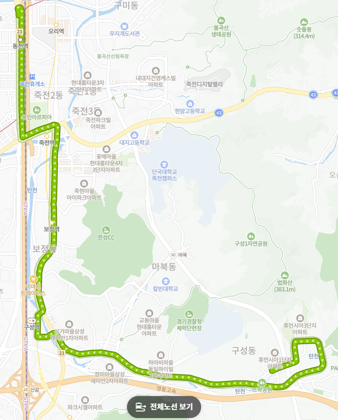 보정역 연결 (수인-분당선): '보정역'을 경유하여 죽전/보정동 상업 지구 및 주변 학교로의 접근성을 높입니다.