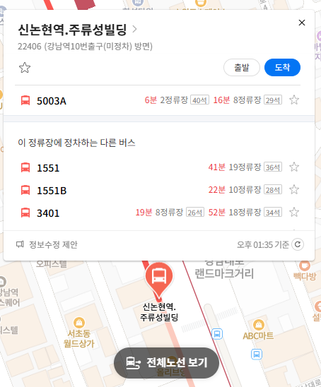 실시간 위치를 확인하시면 현재 버스의 위치를 알 수 있습니다.