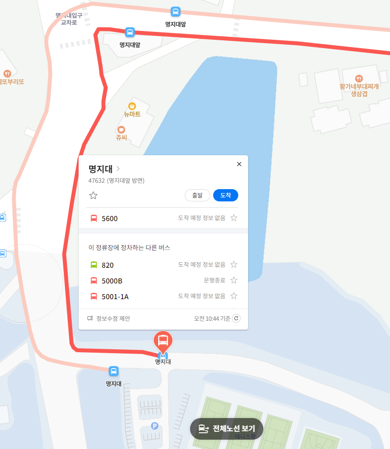 첫 번째 정류장 명지대 위치 알아보기