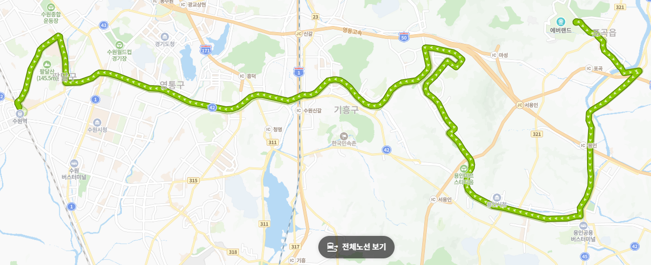 지하철 연계: 신분당선의 주요 역인 성복역, 상현역, 광교중앙역, 광교역 등을 경유하거나 인근에서 정차하여 지하철 환승이 매우 편리합니다. 특히 광교 지역에서 신분당선 접근성을 높이는 핵심 역할을 합니다.