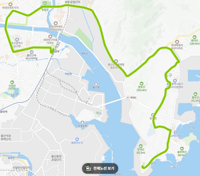 ● 동구-북구-남구 연결: 구 127번 버스를 대체하여 동구와 북구(염포), 중구-남구(삼산)을 이어주는 역할을 합니다.