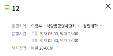 종점행 : 첫차 : 05:30 막차 : 23:30