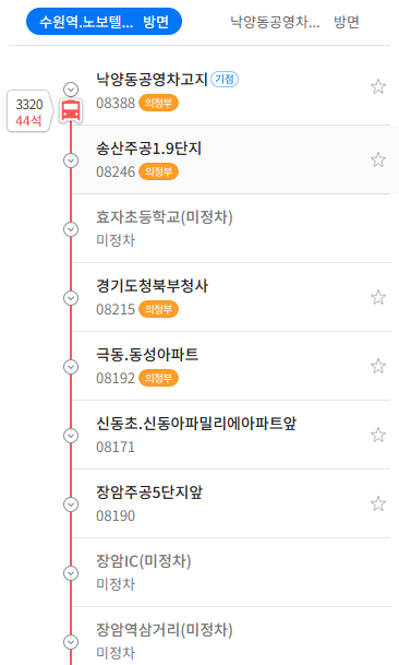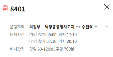 종점행 : 첫차 : 07:10 막차 : 20:10
