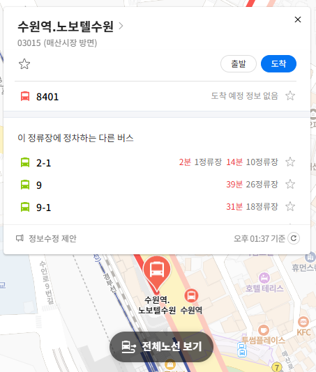 마지막 정류장 수원역.노보텔수원 위치 알아보기