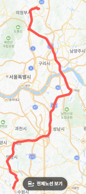 전철로 의정부와 수원을 오가는 것보다 요금이 저렴하며, 자가용을 이용하는 것에 비해 훨씬 경제적입니다. 고유가 시대에 장거리 통행 시 교통비를 절감할 수 있는 좋은 대안입니다.