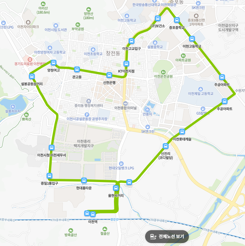 시내 순환 노선: 이천 시내를 한 바퀴 돌아 원하는 곳에서 하차할 수 있습니다.