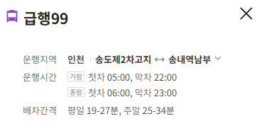 인천 급행99번 버스 배차간격