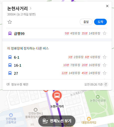 인천 급행99번 버스 실시간 위치 조회하기